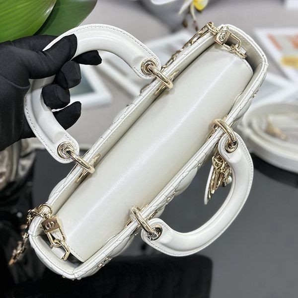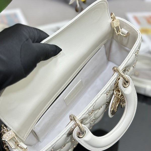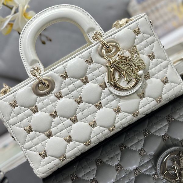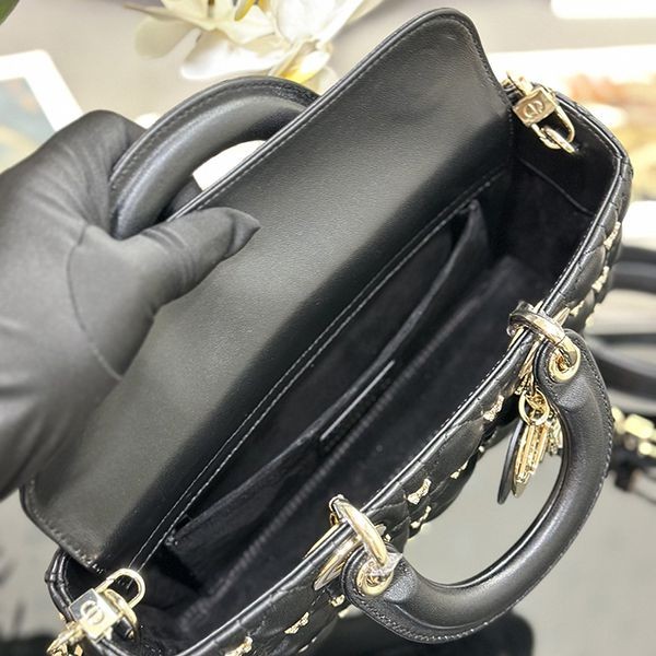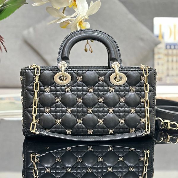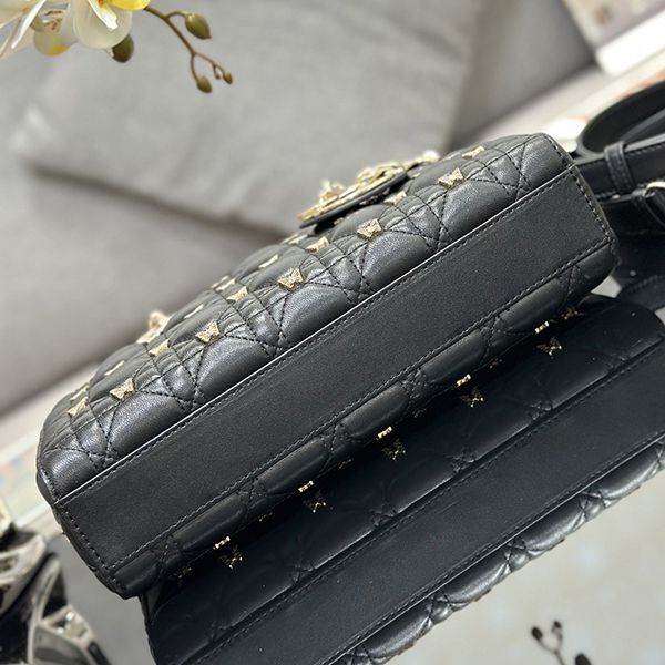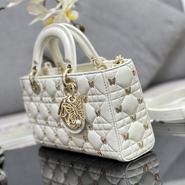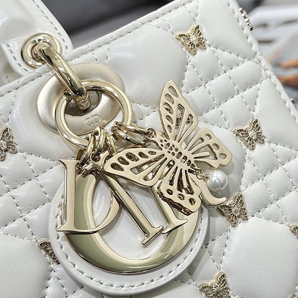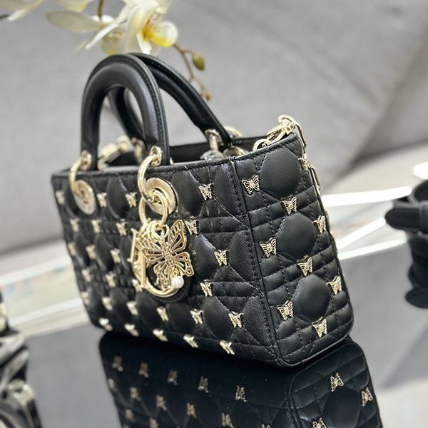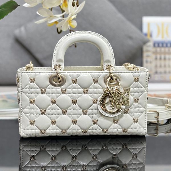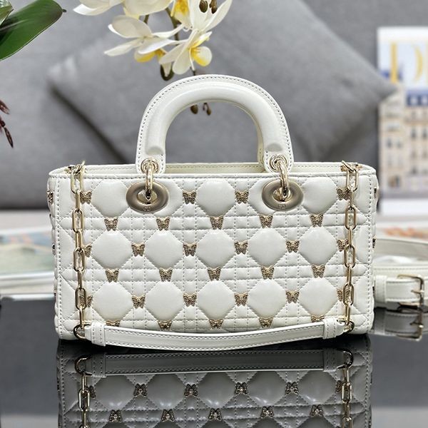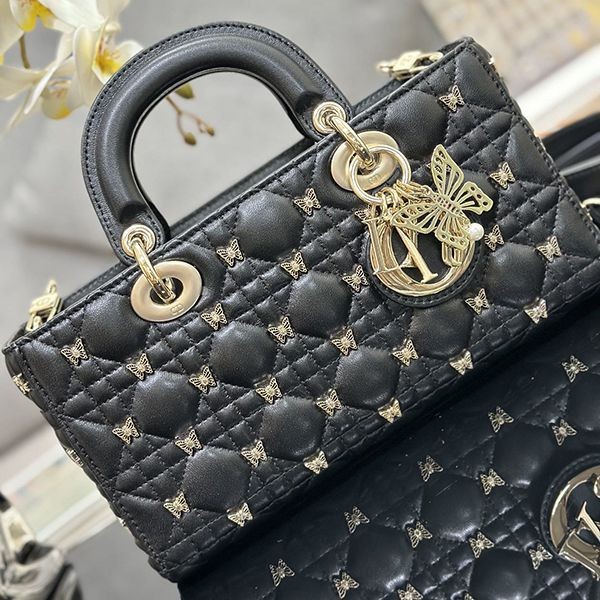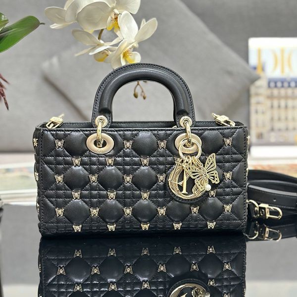 Elegant Dior LADY D-JOY replica medium bag with butterfly studs