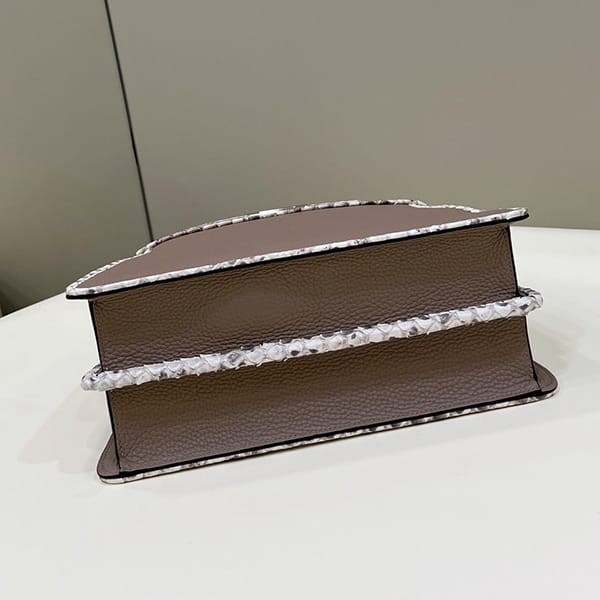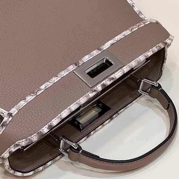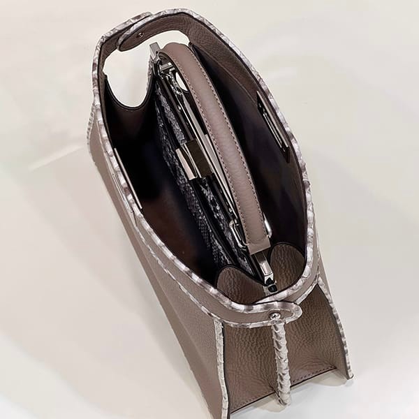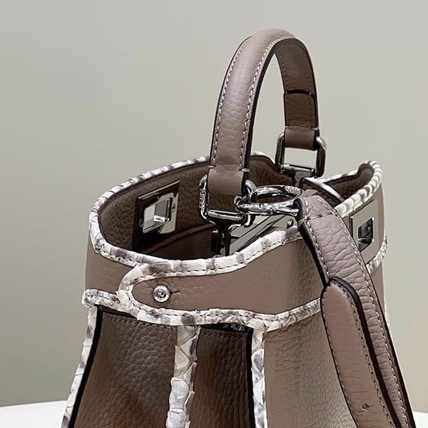 -Iconic small Peekaboo I.C.U bag in grey full grain leather with python print elasto leather trim.