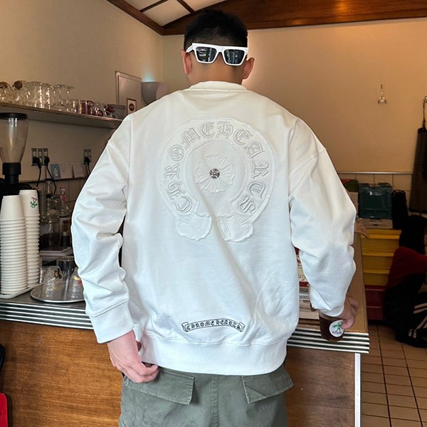 Chrome Hearts Fake Horseshoe Crew Neck Sleeve Logo Sweatshirt