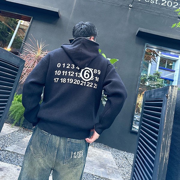 Maison Margiela Copy Knit Zip-up Cardigan Hooded Sweater