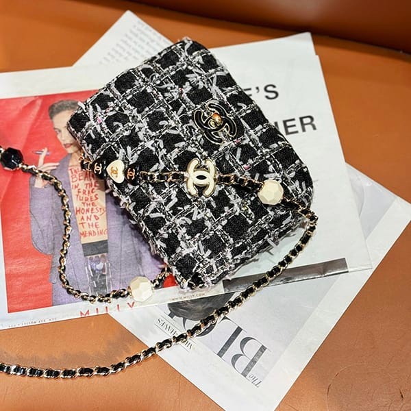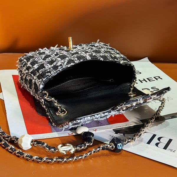 Chanel Fake Mini Flap Bag Tweed Resin Black