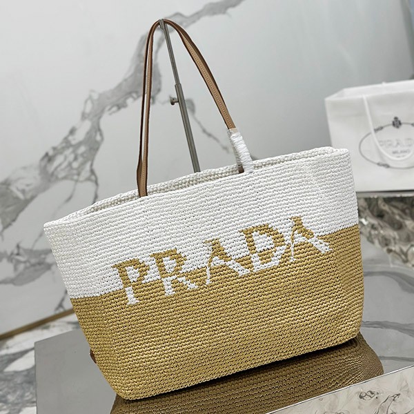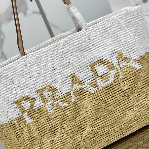 Prada raffia and leather tote bag copy