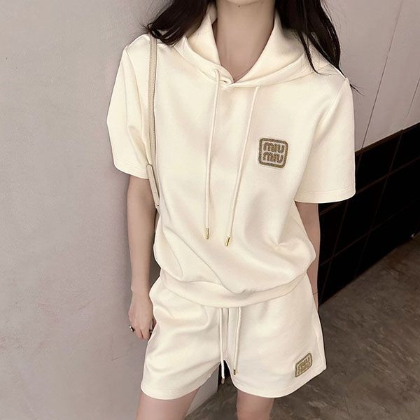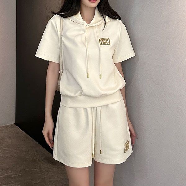 Miu Miu fake logo sweatshirt set, short sleeves