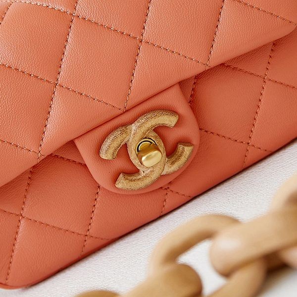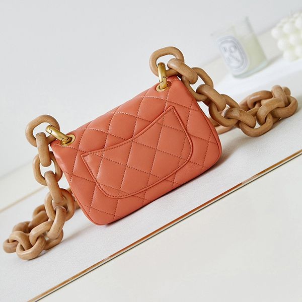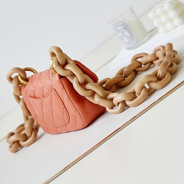 The wooden chain is impressive ☆ [Chanel] Mini flap bag replica AS4165