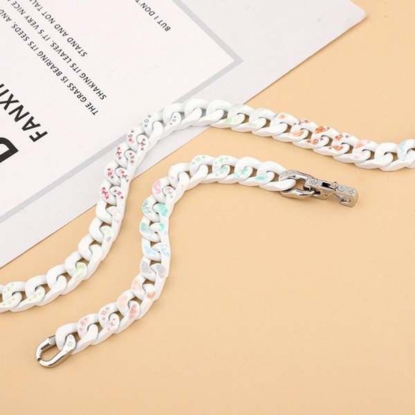 A playful color palette gives this chain link necklace a modern look.