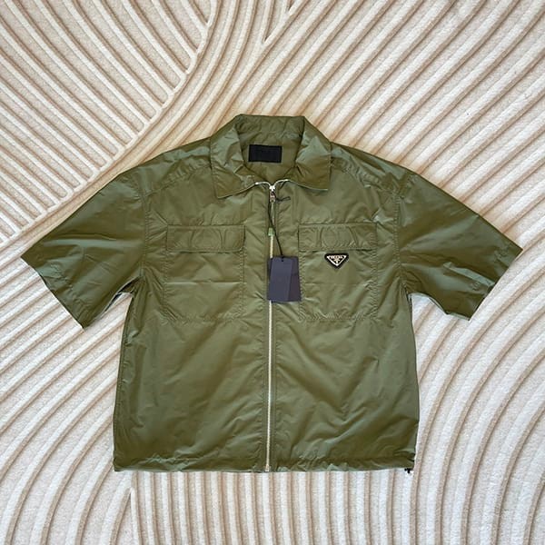 Prada Re-Nylon Short Sleeve Zip-Through Shirt with Logo Fake