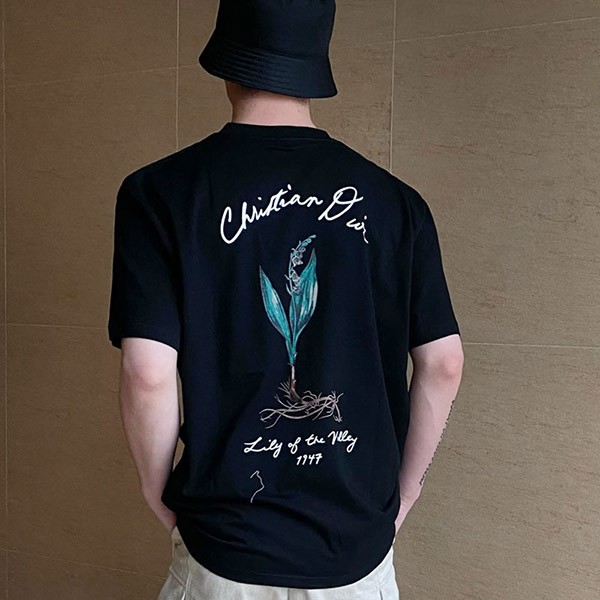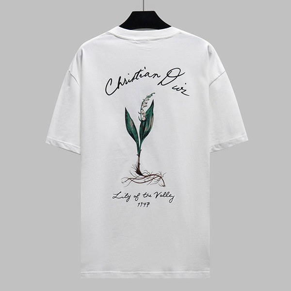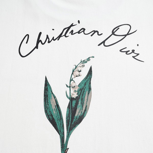 A T-shirt that celebrates the beauty of plants with a delicate lily of the valley print. Made from white cotton jersey, it features a hand-drawn Christian Dior signature print on the chest. This T-shirt subtly complements a relaxed look.