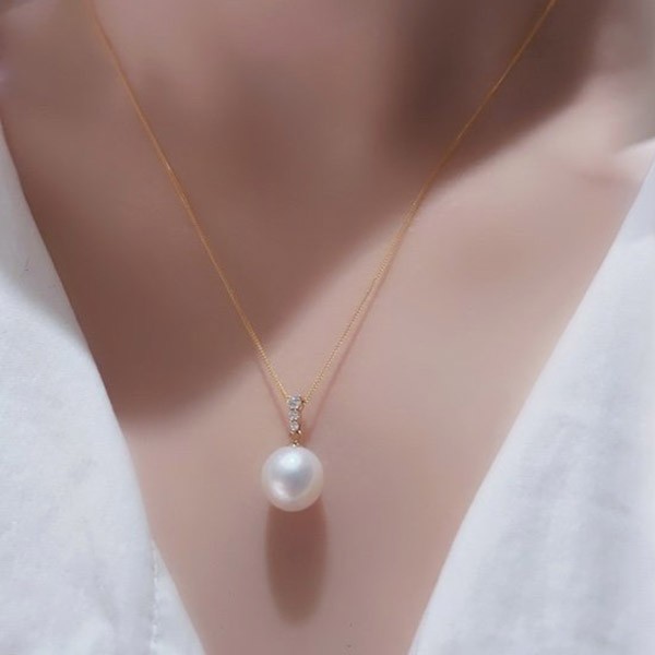 A pendant with a gentle impression, with pearls and diamonds. It will casually color your daily outfit.