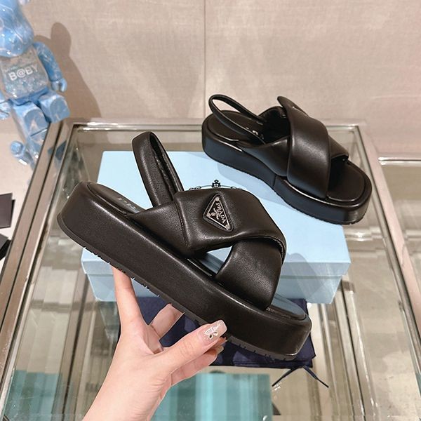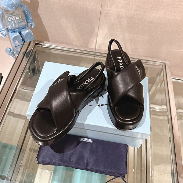 Super rare! Prada Replica Soft Padded Nappa Leather Wedge Sandals 1XZ758