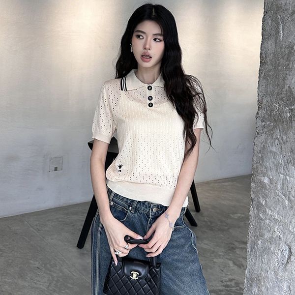 Dior knit T-shirt replica honey embroidery