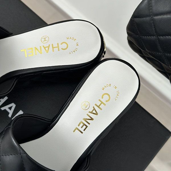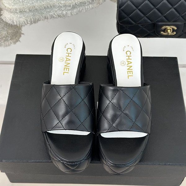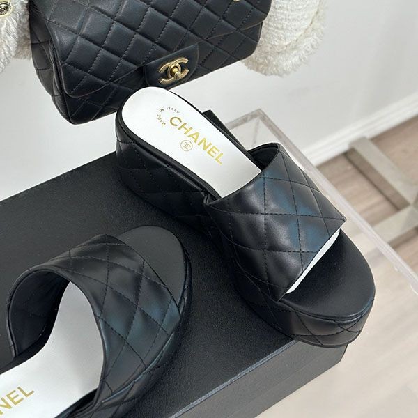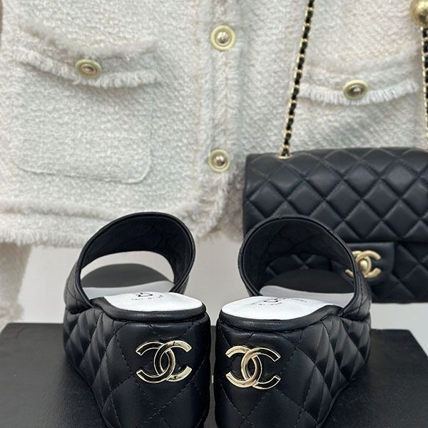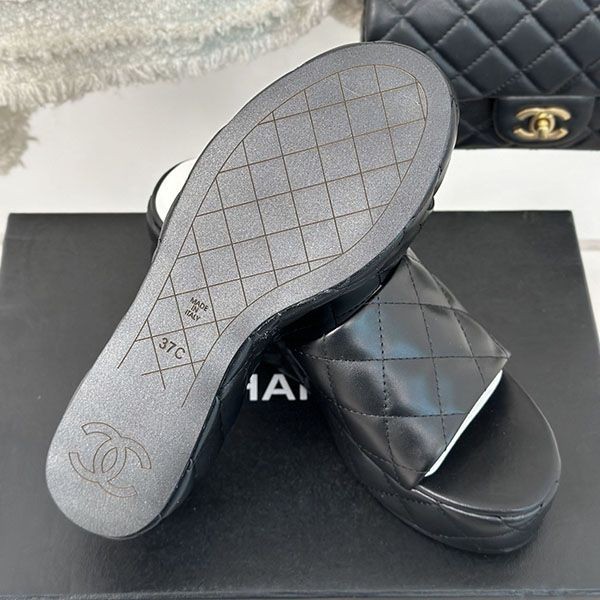 Chanel wedge sandals grade n black