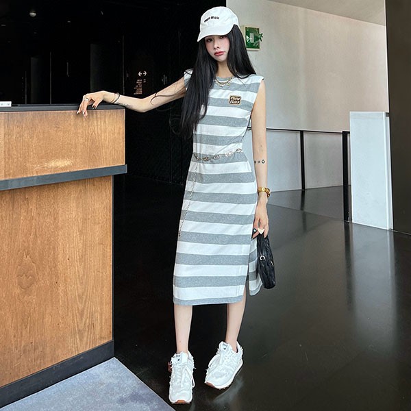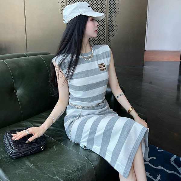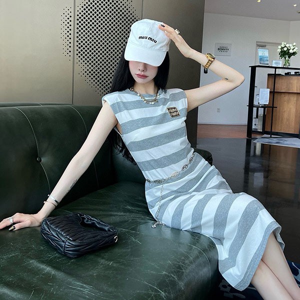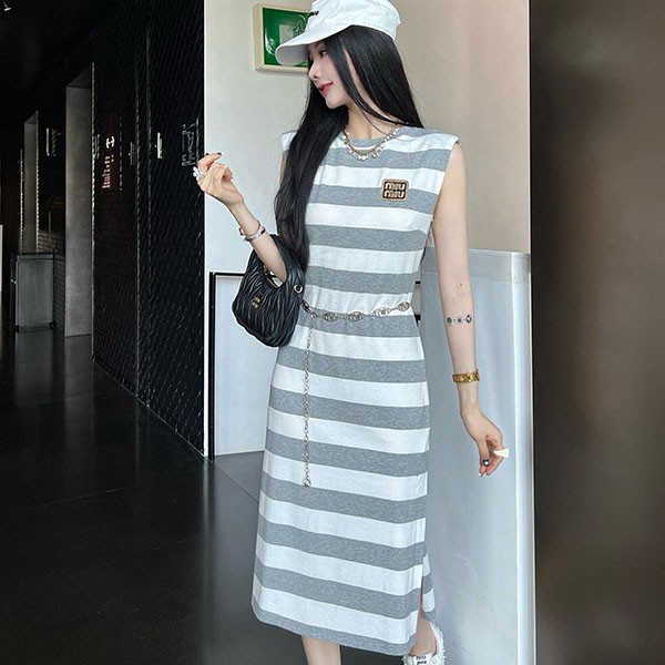 Miu Miu Cotton Silk Replica Striped Polo Dress