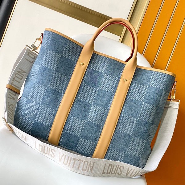 Large capacity *Louis Vuitton*Weekend Tote Bag replica Denim Damier N40702