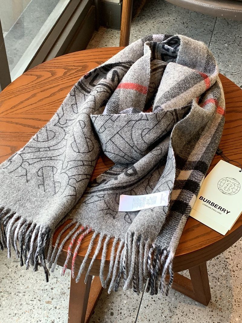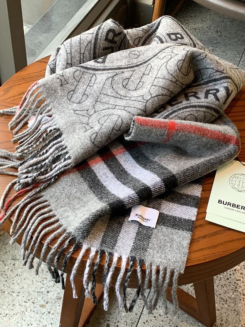 Burberry Copy Reversible Monogram Logo Jacquard Cashmere Scarf