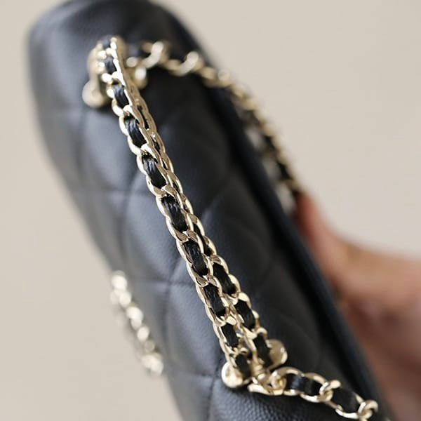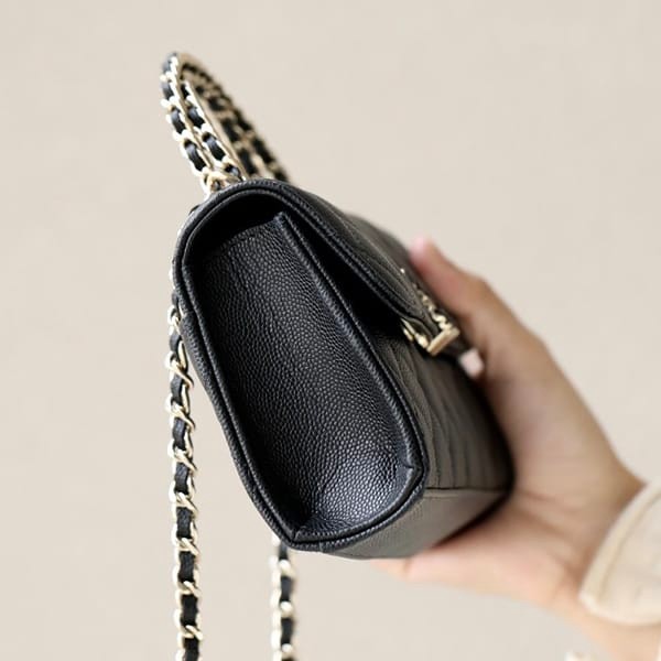 ?Chain strap woven with leather of the same color