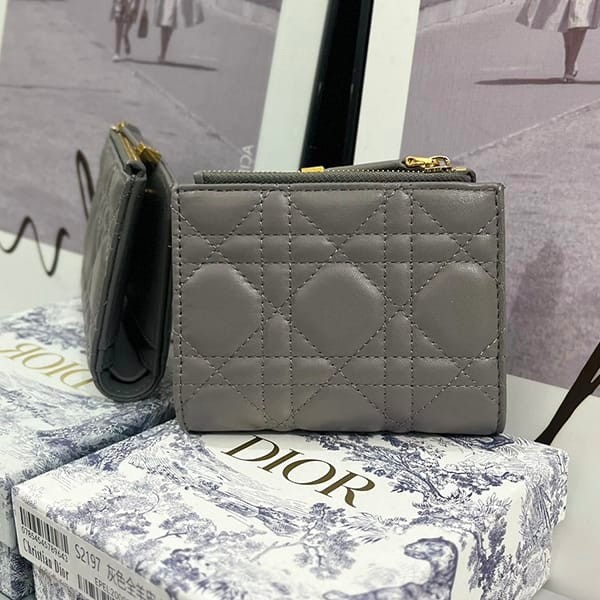 Dior Fake Caro Dahlia Bifold Wallet Cannage