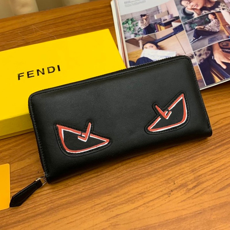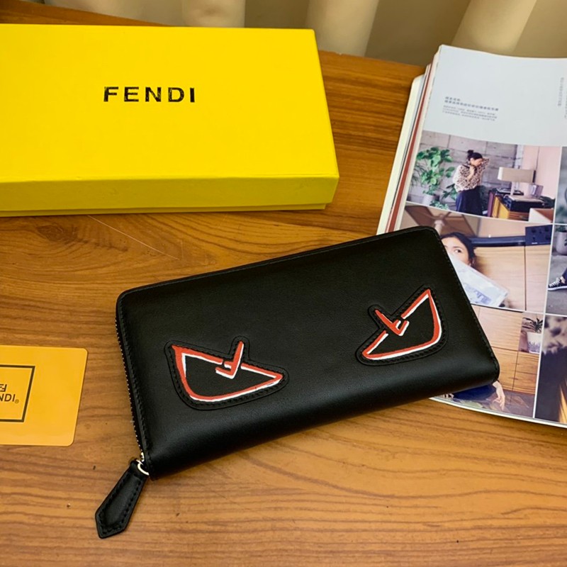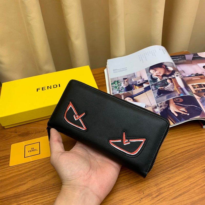 Popular Fendi Zip Around Long Wallet Replica Black Bag Bugs Zipper Wallet Customized fen64906
