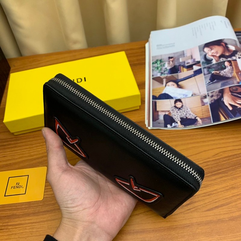 • Popular Fendi Zip Around Long Wallet Replica Black Bag Bugs Zipper Wallet Customized fen64906