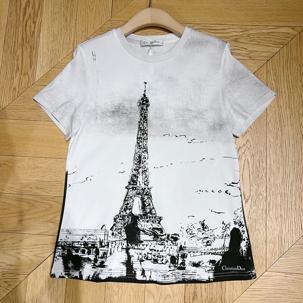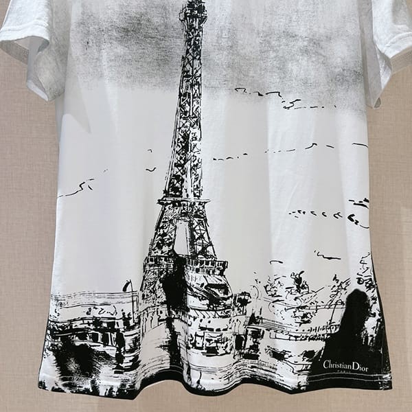 Dior n-grade Paris cotton linen T-shirt Eiffel Tower