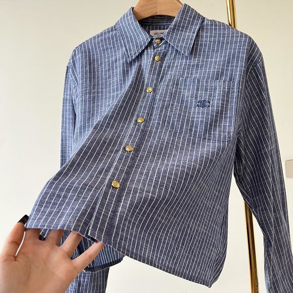 Celine Triomphe embroidered n-grade corduroy cropped shirt