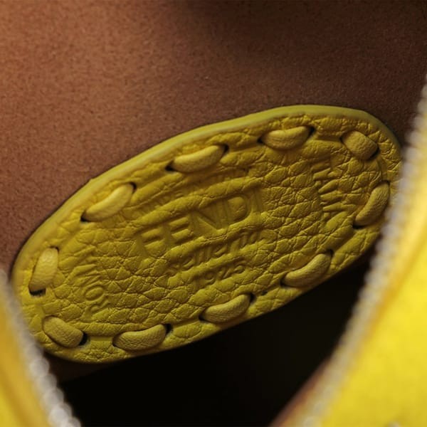 The compact and spacious design features a metal Fendi Roma logo.
