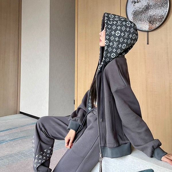 Louis Vuitton Copy Monogram Parka Hooded Top and Bottom Set 1AGCI2