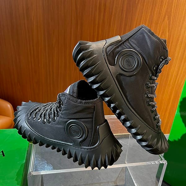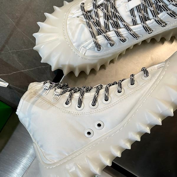 A nylon lace-up sneaker with a rubber outsole with three-dimensional notches.