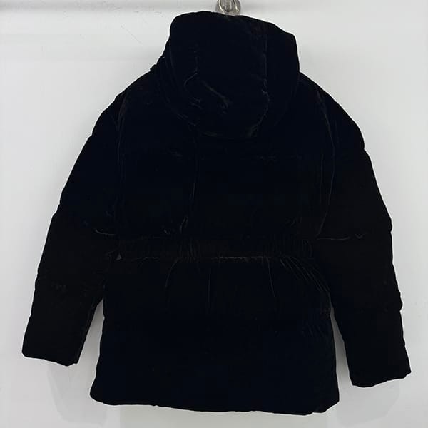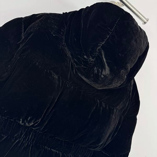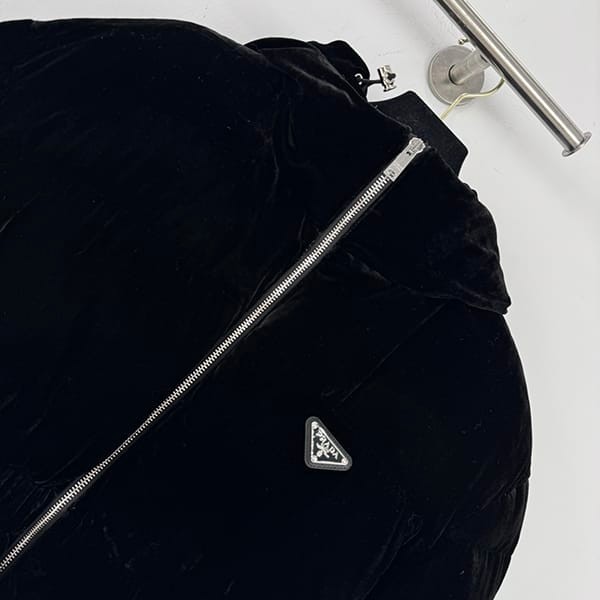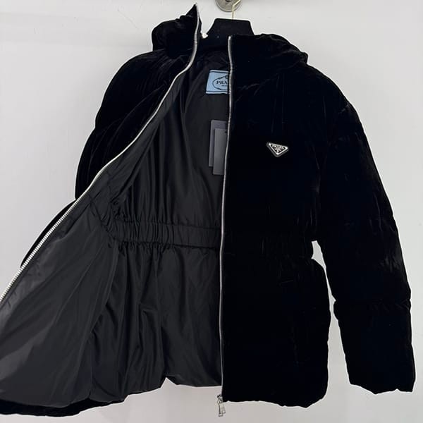 Prada Fake Velvet Hooded Down Jacket Logo