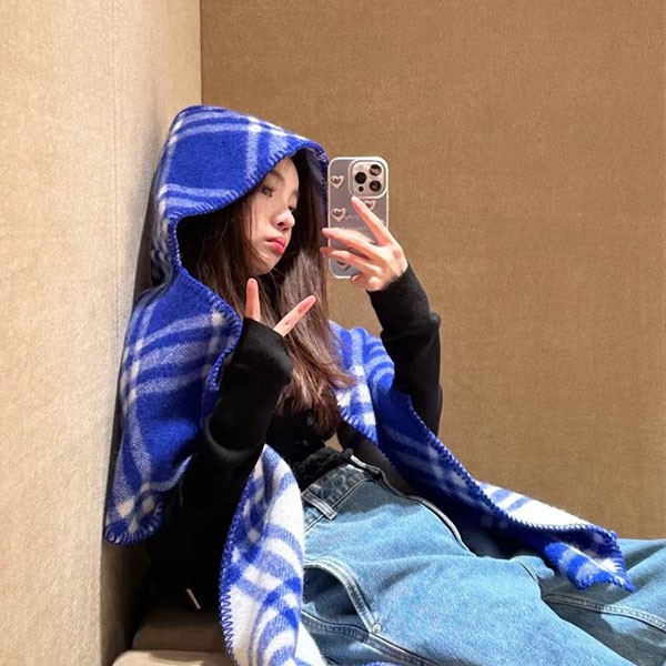 New check Norwegian woven wool scarf. Blanket stitched and brushed for a soft finish.