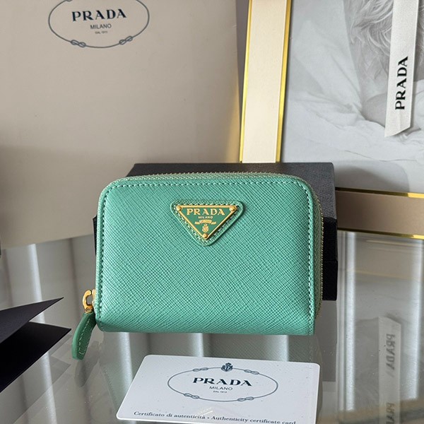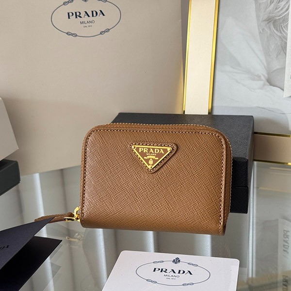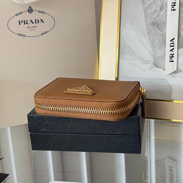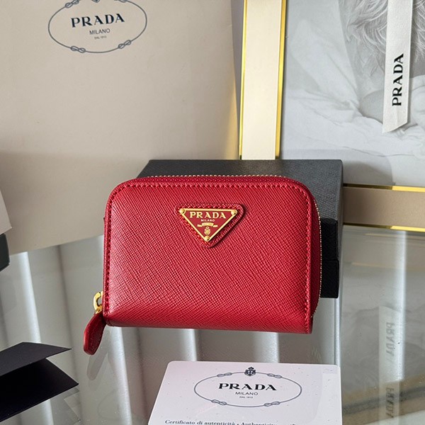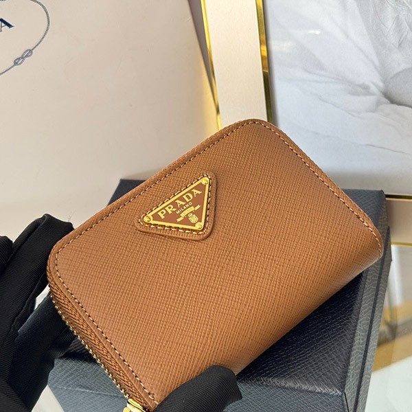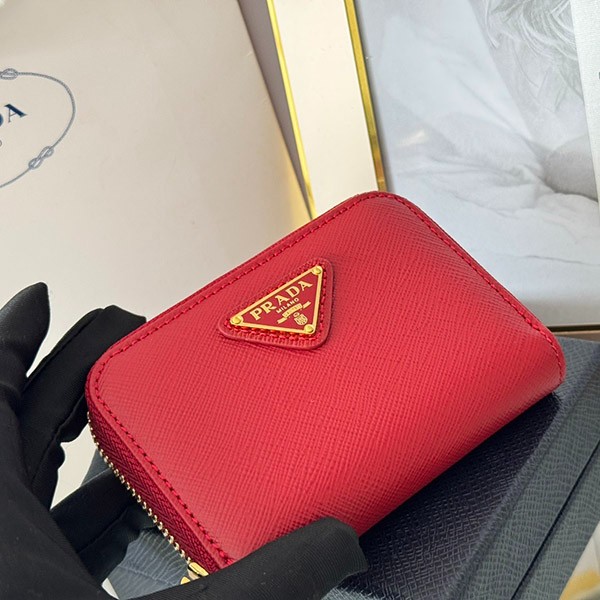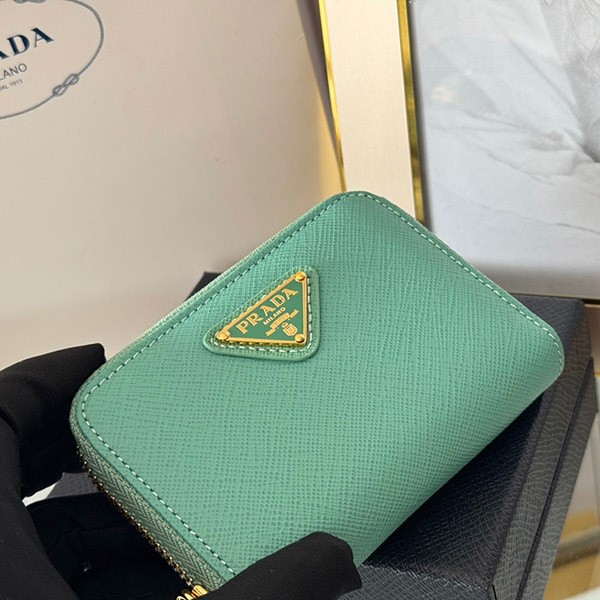 Prada Copy Saffiano Triangle Coin Case 3 Colors