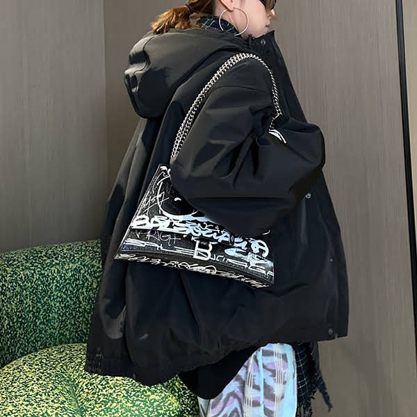 Brand: Balenciaga Fake Balenciaga Fake 3B SPORTS Icon Ski Parka Jacket Men's Fashion > Outerwear & Jackets > Jackets & Others ◆ Product Description Technical ripstop Regular fit Hood with drawstring High stand collar Concealed zip closure with snap button. 2 zip slash pockets Elasticated cuffs and waistline 2 internal zip pockets, 1 cell phone pocket with heat protector on chest 1 internal pocket for ski pass on left chest Storm cuffs with thumb holes Removable elastic snow skirt Water repellent Waterproof tape sealed seams 80gsm lightweight padded technical lining 3B Sports Icon print on front and right sleeve.