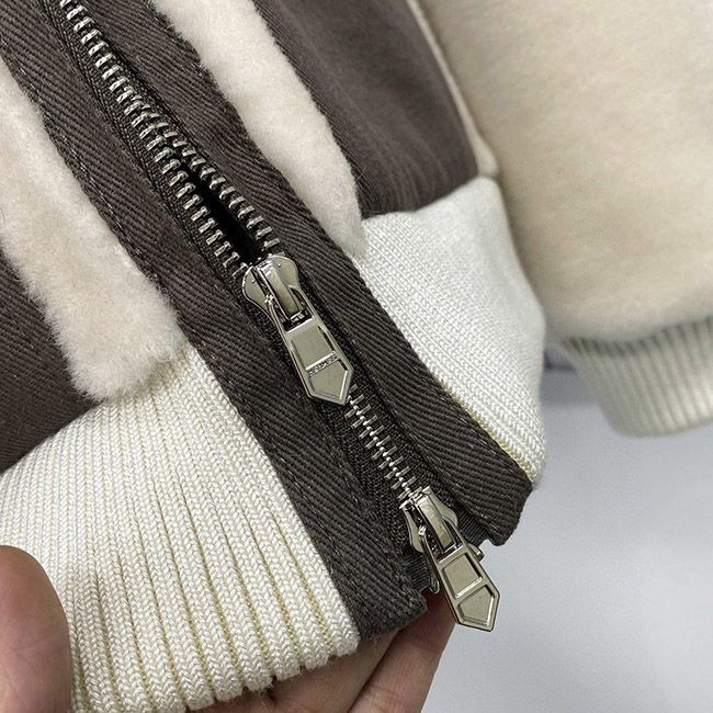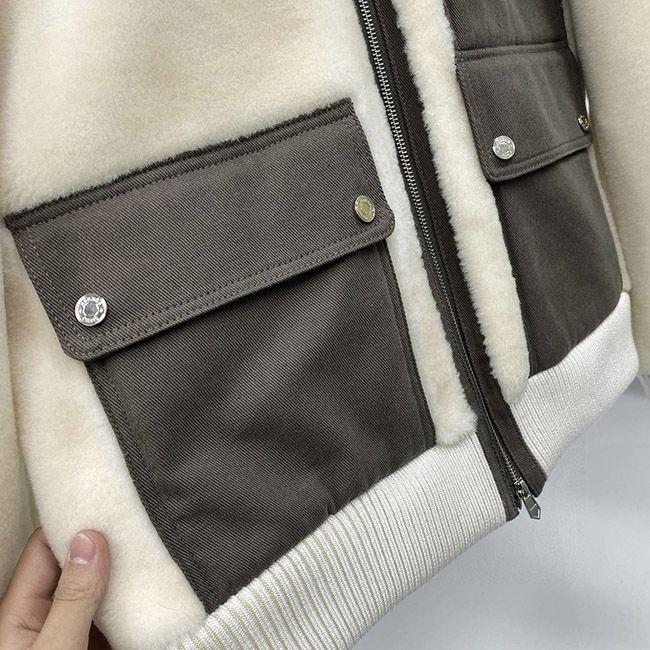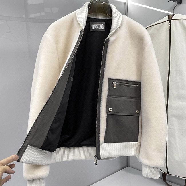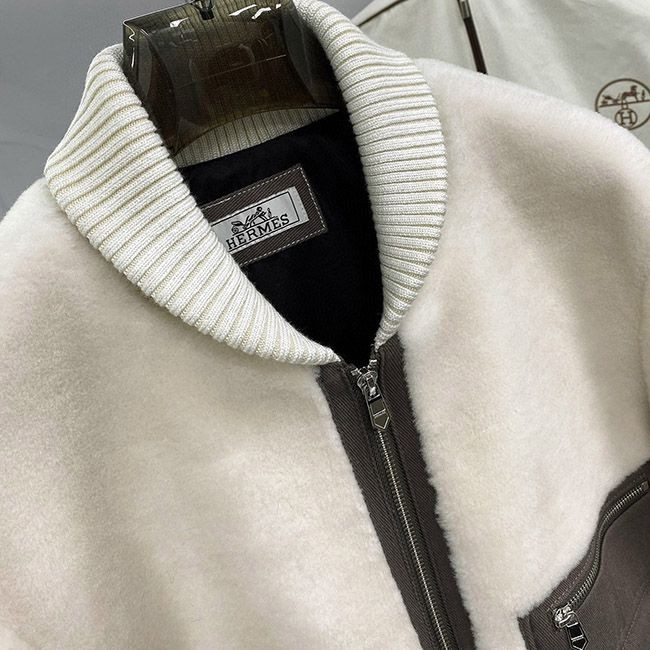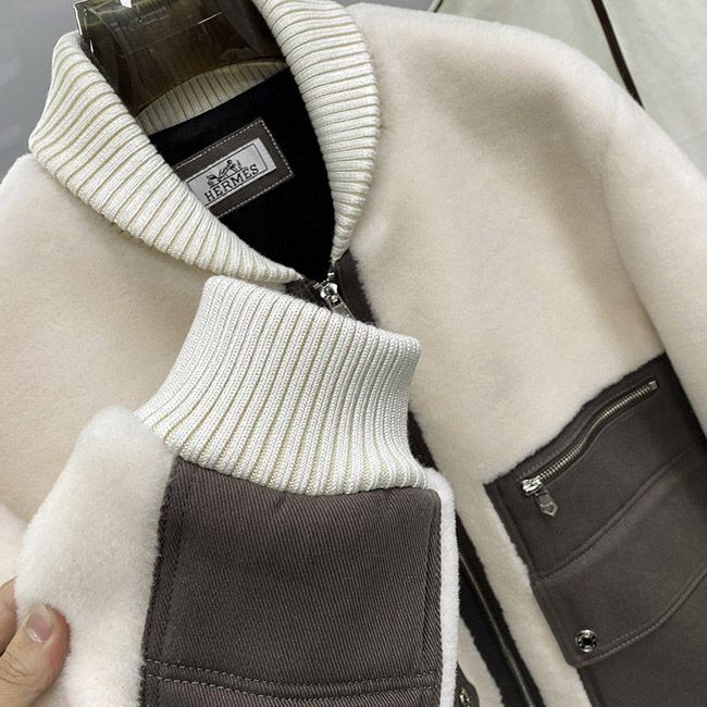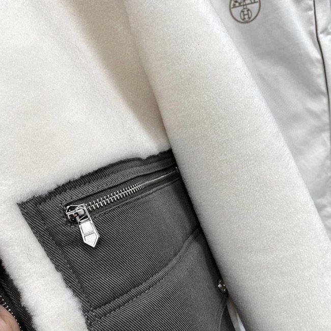 Hermes ribbed collar and lamb fur jacket with pockets