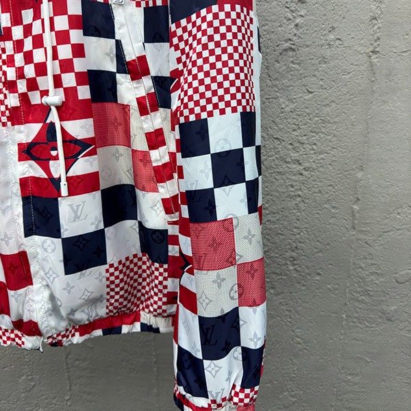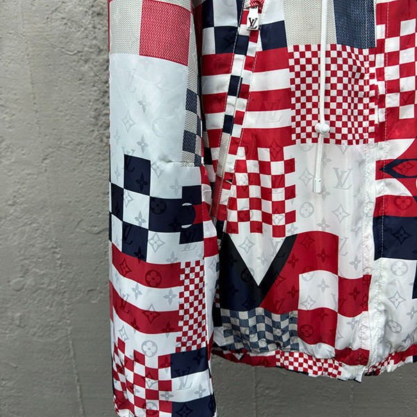 Brand: Louis Vuitton replica ◆ Unique [Louis Vuitton] Reversible nylon windbreaker copy Men's fashion > Outerwear/jacket > Mountain parka Body: 61% nylon, 39% rayon Regular fit Reversible design with nylon exterior and jersey lining Monogram Multi Flags motif overprinted on jacquard nylon Rubber Gaston patch on jersey chest Retractable and adjustable hood can be stowed in zippered collar on nylon side Zipper opening with engraved LV pull Two zippered pockets on nylon side Two piped pockets on jersey side Contrasting white trim on jersey side Elastic cuffs and hem ※ Color: As shown in the photo (actual photo) ※ Level: 1:1 (N-grade product)