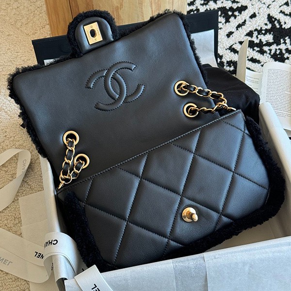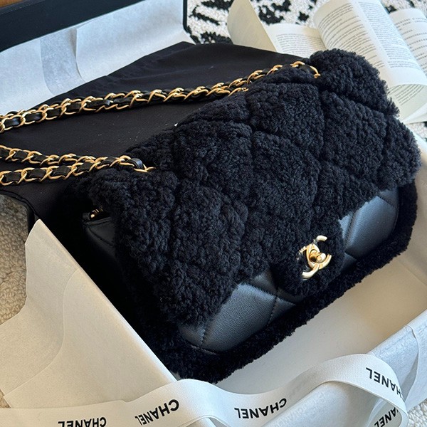 [Fluffy & Leather] Chanel Copy Shearling Flap Bag
