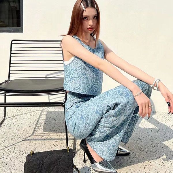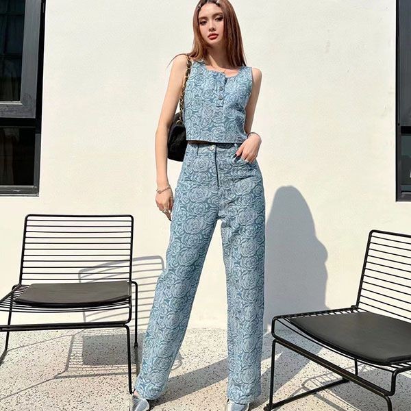 Chanel Camellia Jacquard Denim Top Set