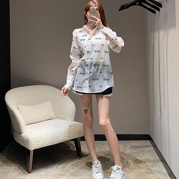 Limited quantity! Miu Miu Printed Long Sleeve Shirt Fake