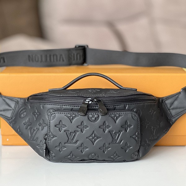 This rush belt bag is made of Monogram Shadow calfskin.
