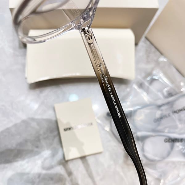 Number 8 logo on the inside of the tip cell and Maison Margiela x GENTLE MONSTER collection logo on the inside of the temple