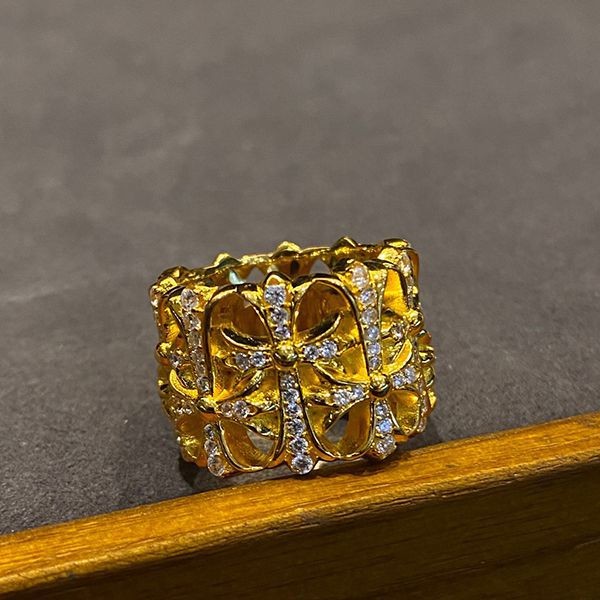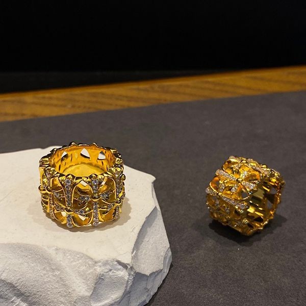 Chrome Hearts Diamond Cemetery Cross Gold Ring