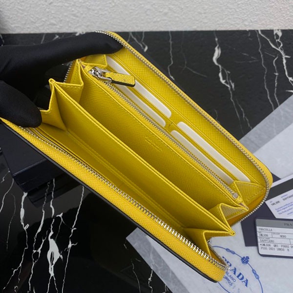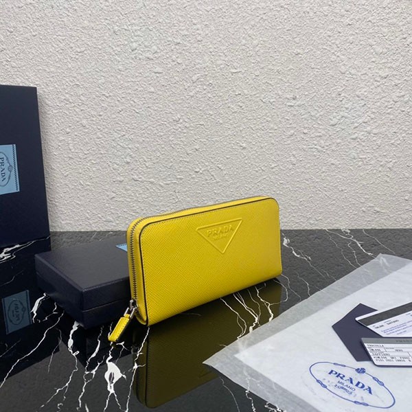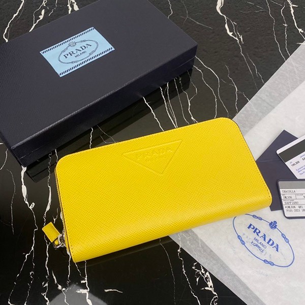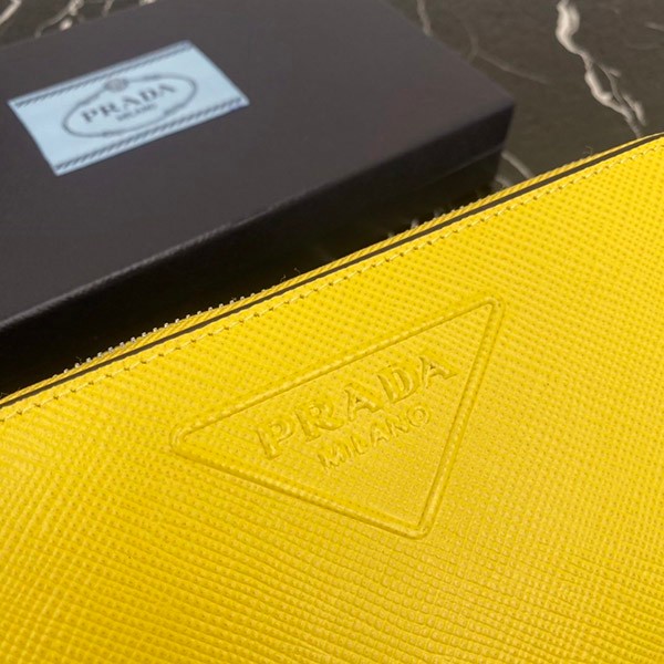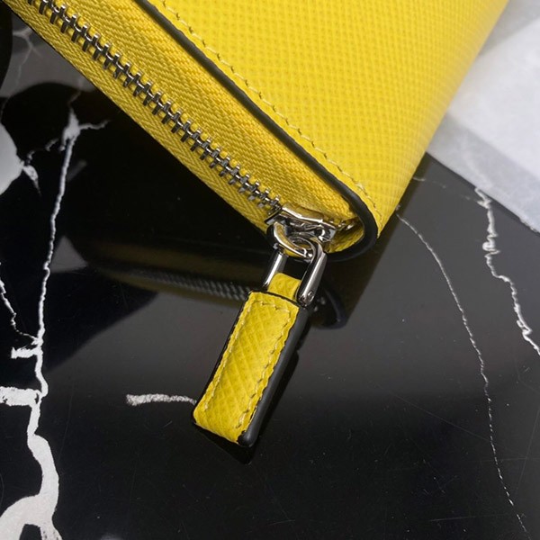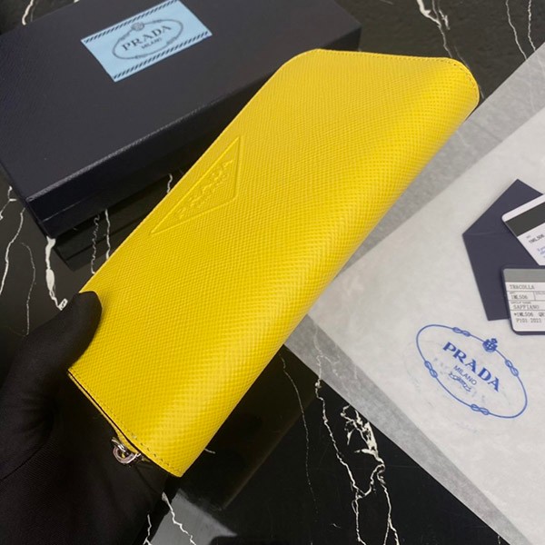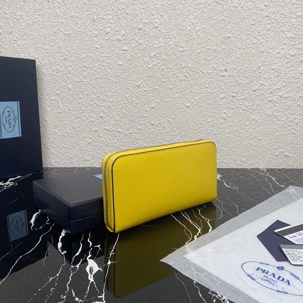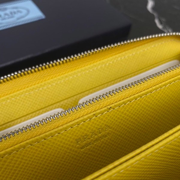 Prada Saffiano Embossed Leather Zip Around Long Wallet Yellow Copy