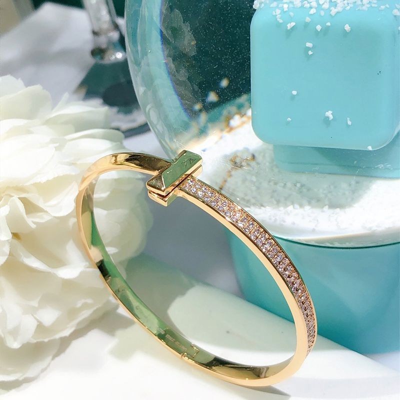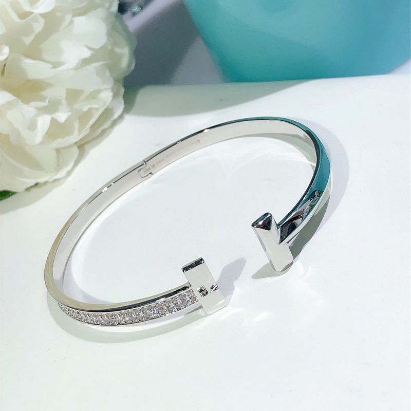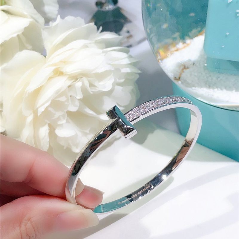 Tiffany T wire bracelet copy onyx with diamonds