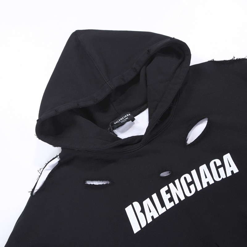 21SS New Balenciaga Hoodie Fake CAPS DESTROYED Fleece Hoodie 659403TKVB64661
