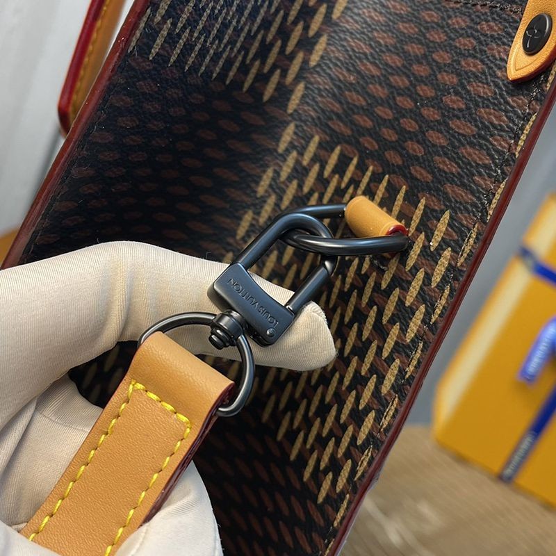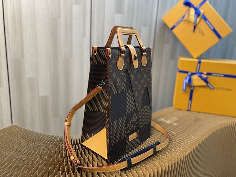 Virgil Abloh teamed up with NIGO, a pioneer of Japanese streetwear design, to create a mini tote bag inspired by London modernist style and Tokyo street fashion. Giant Damier Ebene canvas fusion monogram wave pattern, can hold an iPad, cell phone, notepad, and has a detachable shoulder strap.