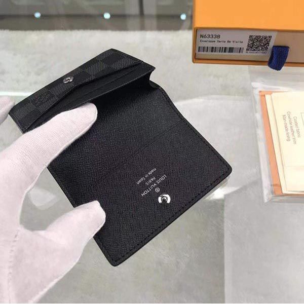 The Envelope Carte de Visite is made of Damier Graphite canvas for a slim and sophisticated look. It fits neatly into any pocket or bag, and the snap closure allows you to safely carry your credit cards and other items. Damier leather, dyed in deep tones, is a supple and durable material unique to the Maison. It is a great gift for yourself or someone special.