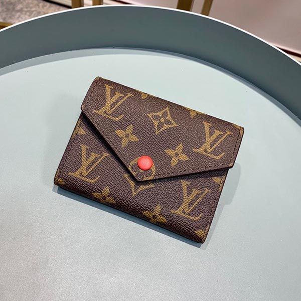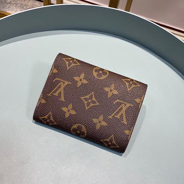 The Portefeuille Victorine is a compact bag made of Monogram canvas that exudes a feminine atmosphere and functional beauty. The interior features card slots and pockets for bills and coins. Accented with grained leather lining, the envelope-style flap is finished with snaps in the same color as the lining.
