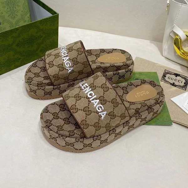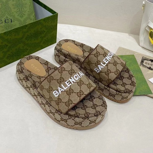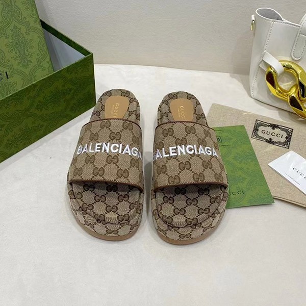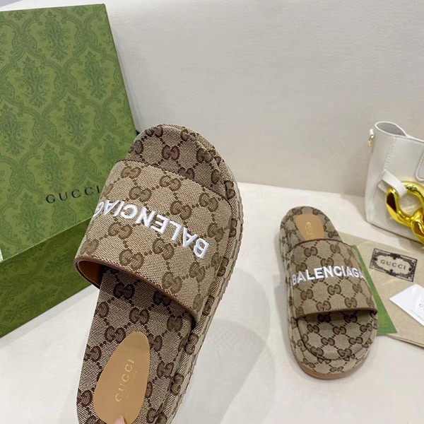 Gucci Balenciaga Maxi GG Canvas Slide Sandals Replica