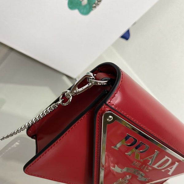 Prada Brushed Leather Shoulder Bag Copy Big Logo Chain