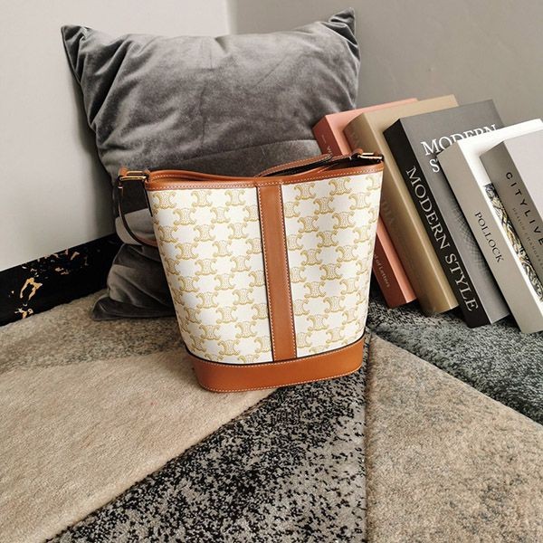 Celine Small Bucket Replica/ Triomphe canvas & calfskin 191442CAS.01BC