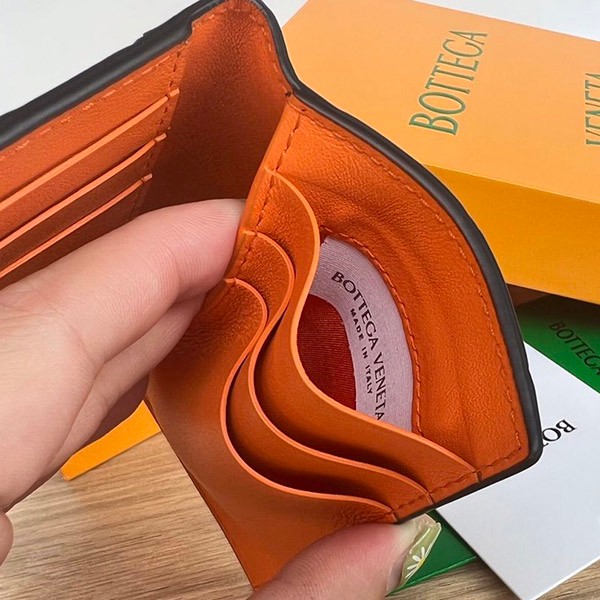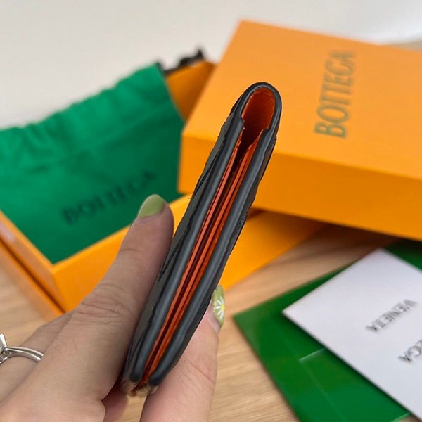 Bottega Veneta Copy Flap Card Case Black/Orange