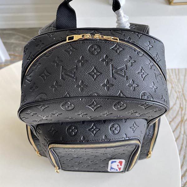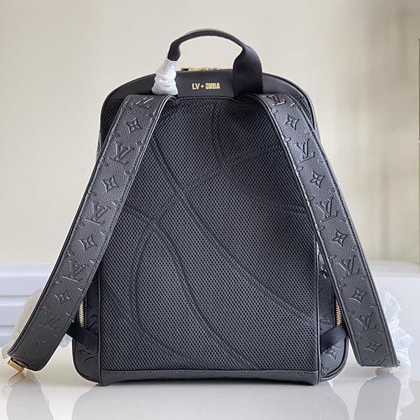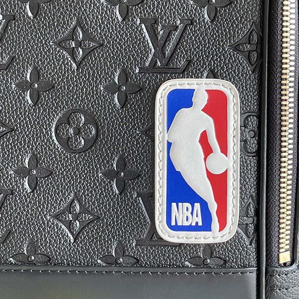This "basketball backpack" is made of ball-grained leather reminiscent of basketball, embossed with a monogram pattern and decorated with a three-color NBA logo.